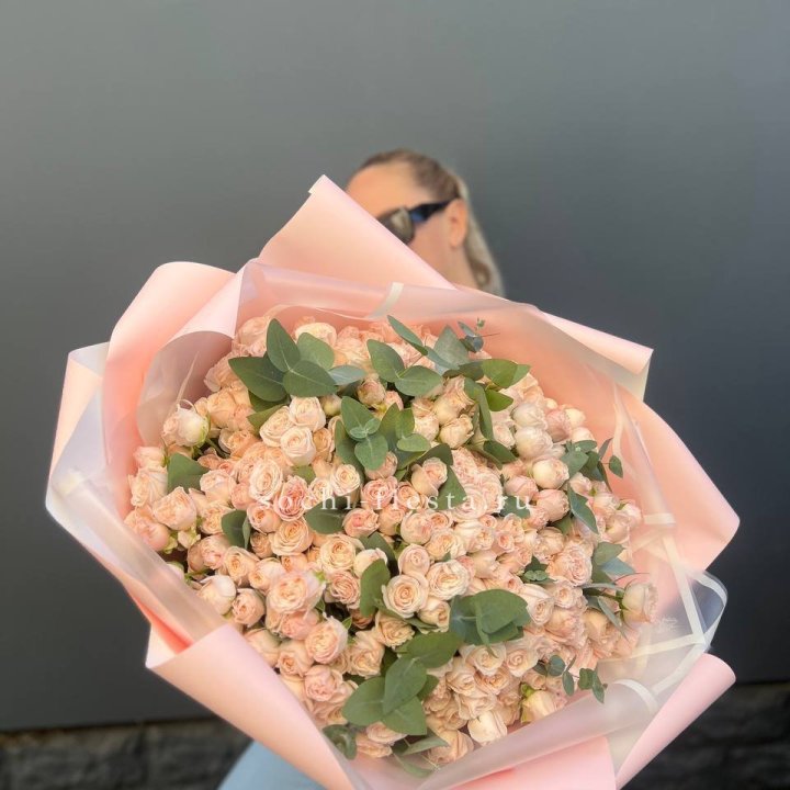 Цветочная корзина из пионов и пионовидных роз "Юниверсити"