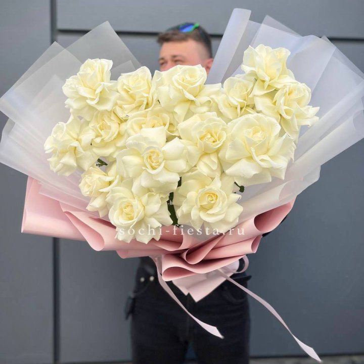 Букет из 15 французских роз Вайт дрим