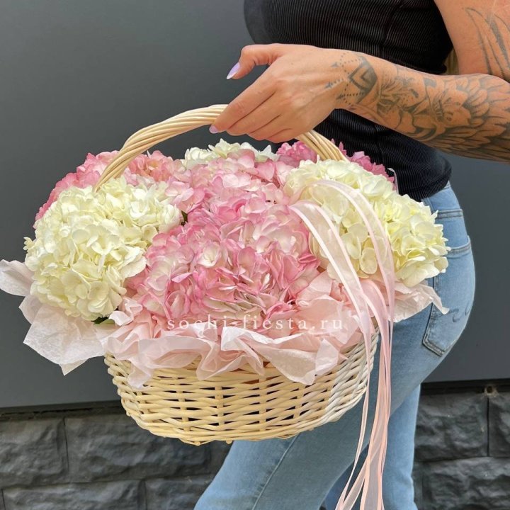 7 гортензий в корзине
