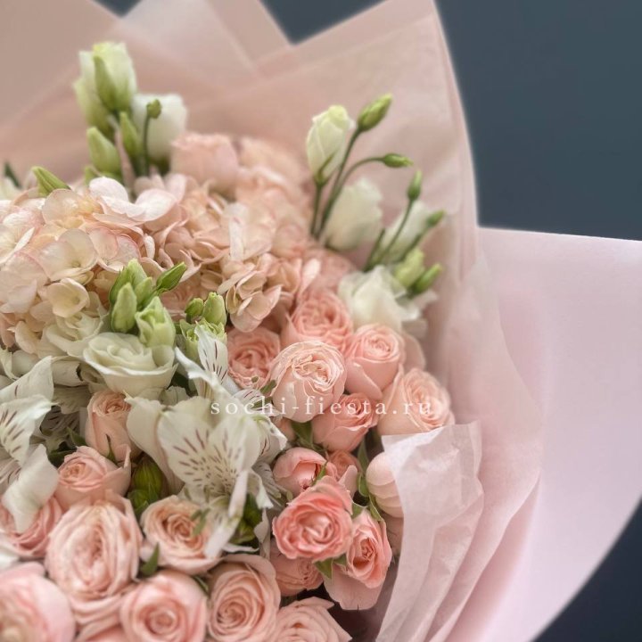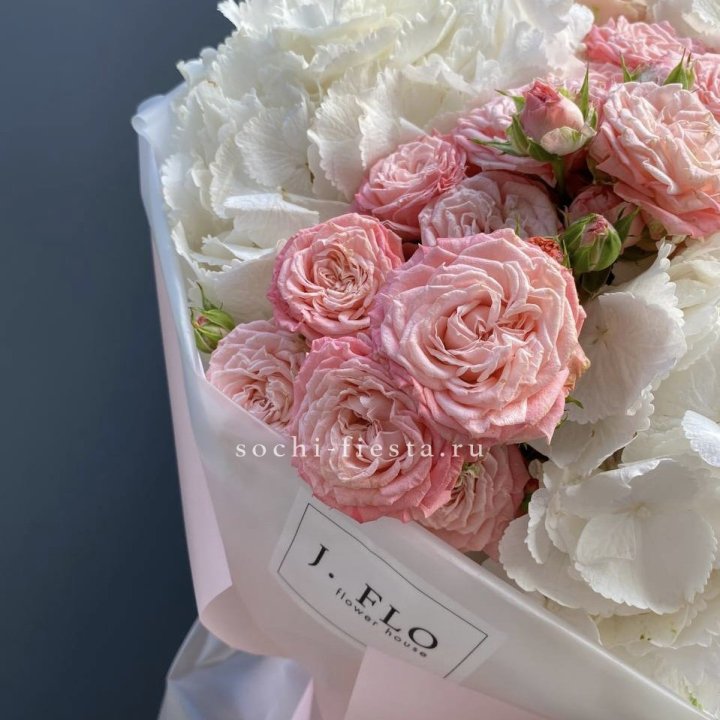 Букет гортензии и роз "Валенсия"