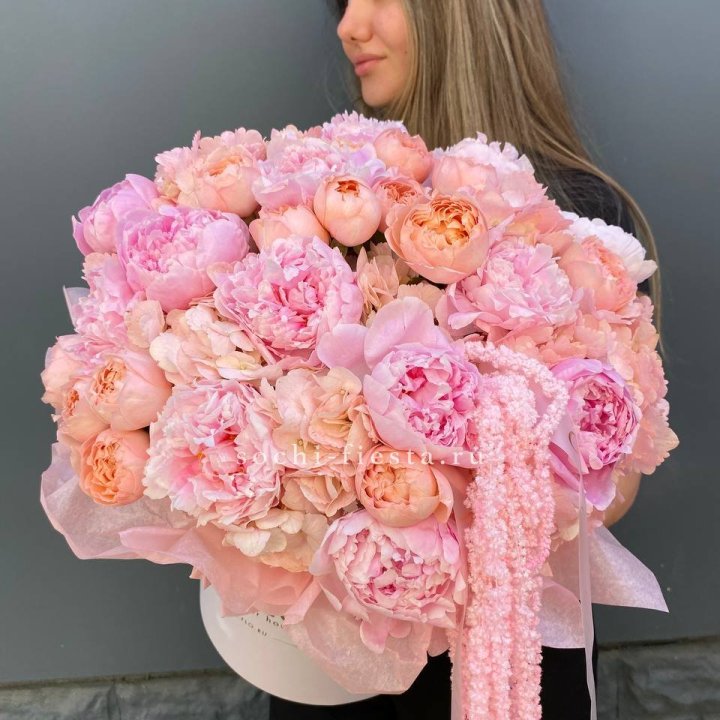 Коробка с пионами "Дабл фловер"