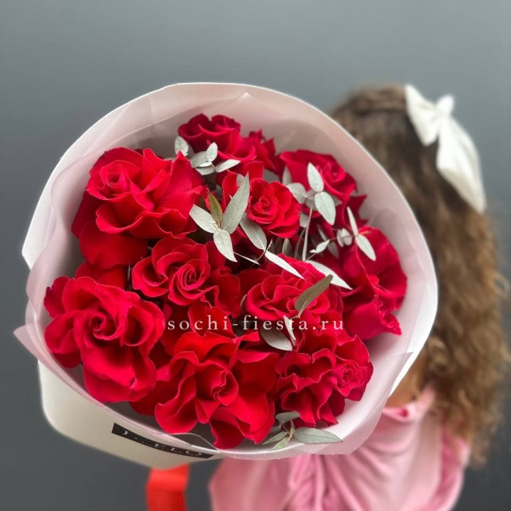 9 роз с эвкалиптом
