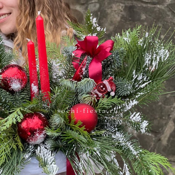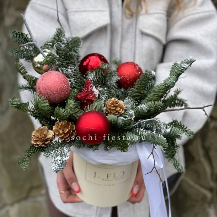 Новогодняя композиция в коробке ред