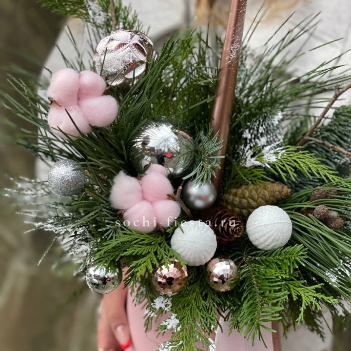 Новогодняя композиция в коробке пинк