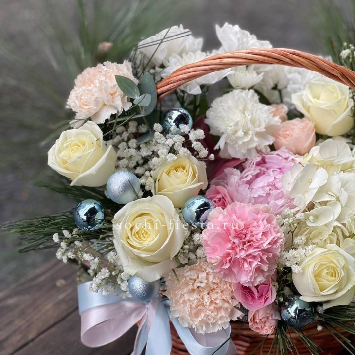 Новогодняя корзина с цветами