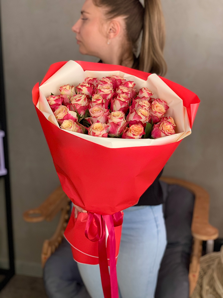 Букеты из розовых роз