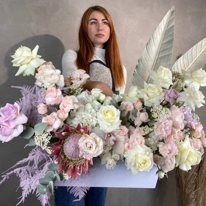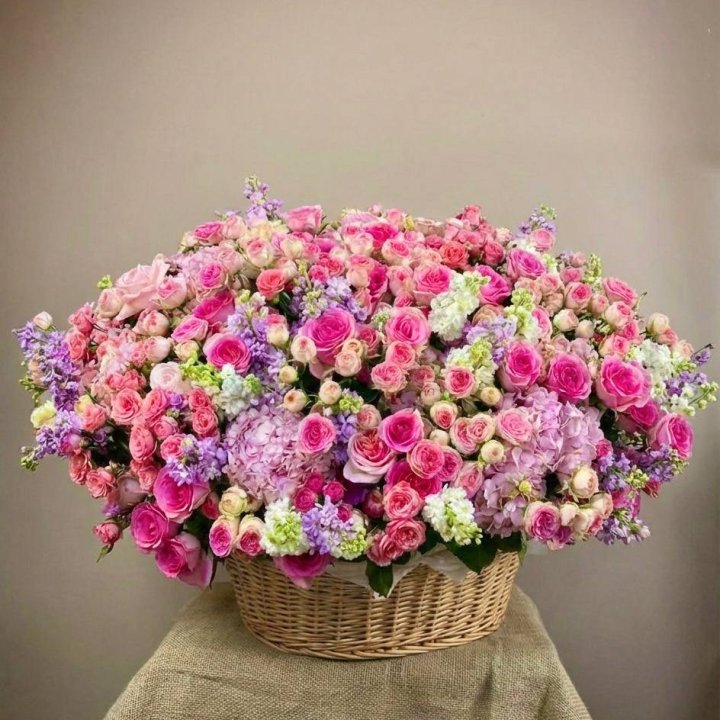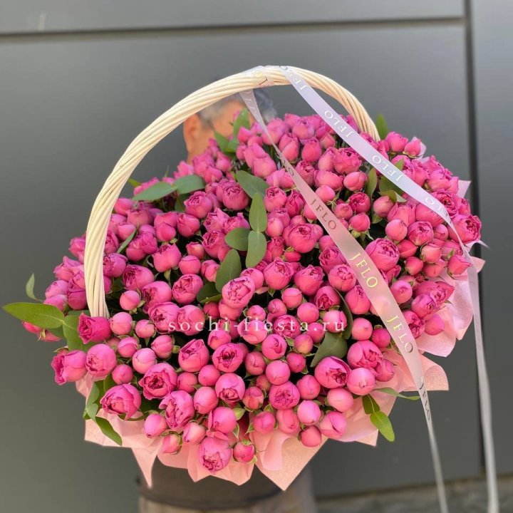 Цветочная корзина из пионов и пионовидных роз "Перфекте"