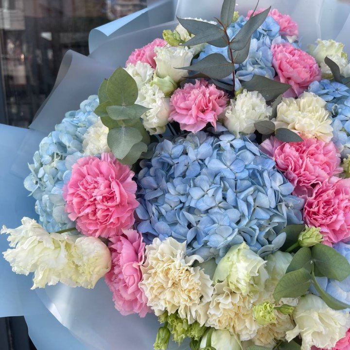 Премиум корзина гортензий и пионов