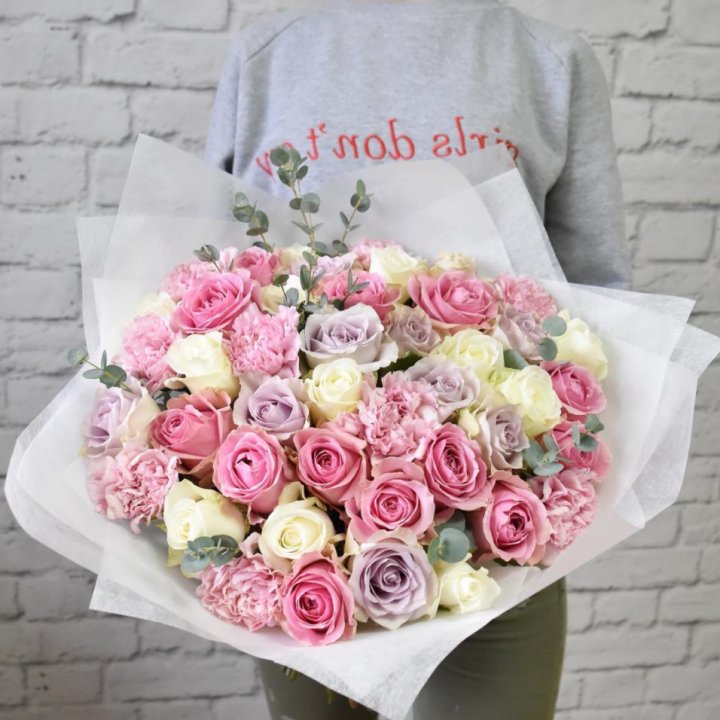 Букеты из эустом, альстромерий, диантусов, хризантем в Нижнем НовгородеСреднее время сборки: 35-45 минут