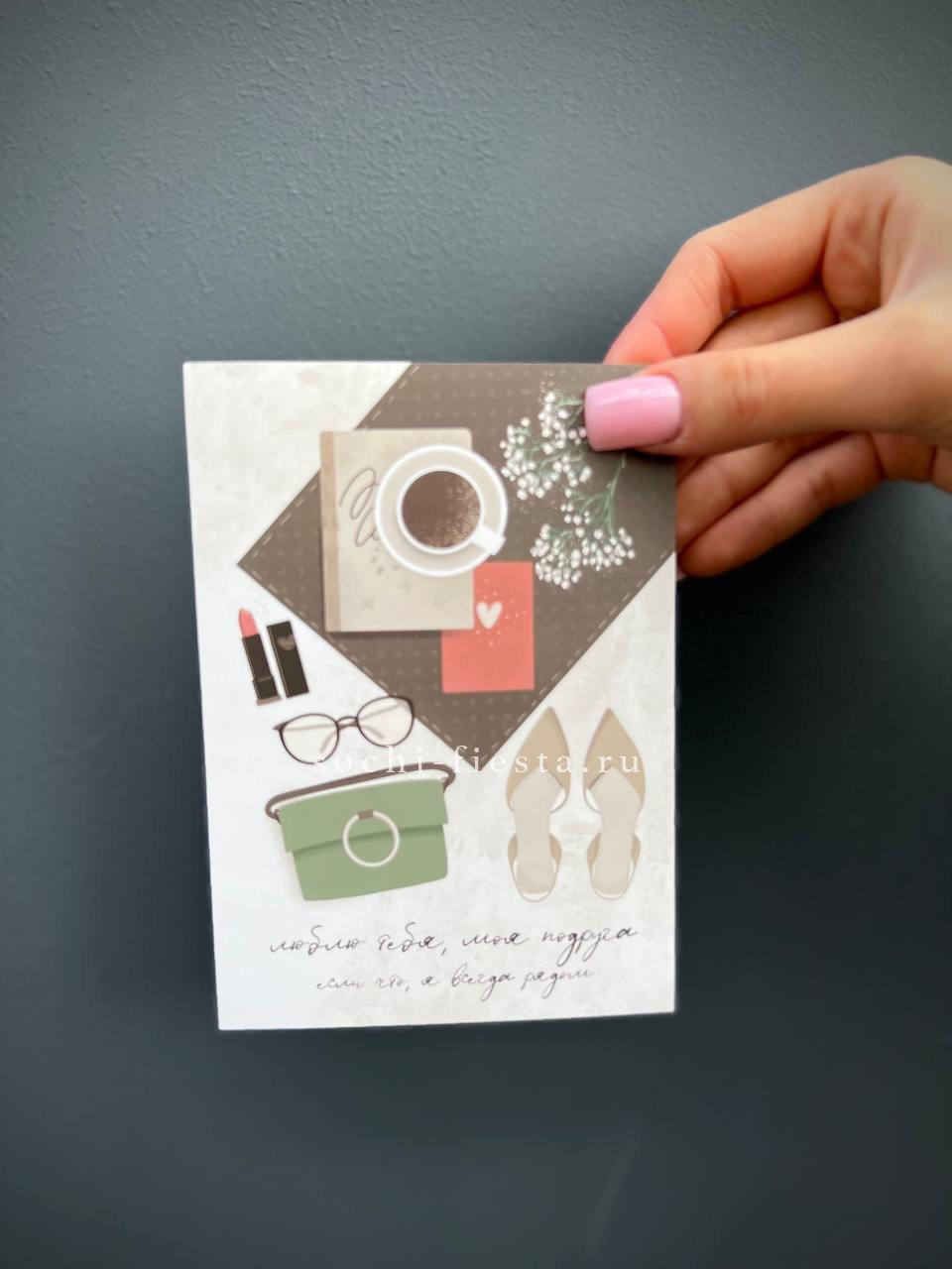 Конечно! К каждому заказу мы бесплатно прикладываем подарочную открытку с вашим текстом. Просто напишите пожелание при оформлении заказа.