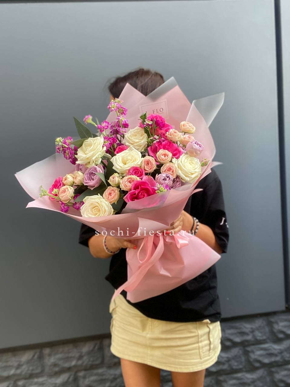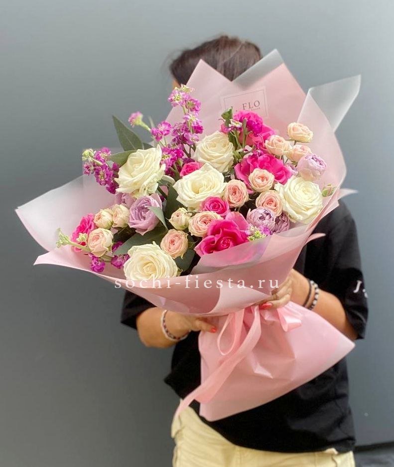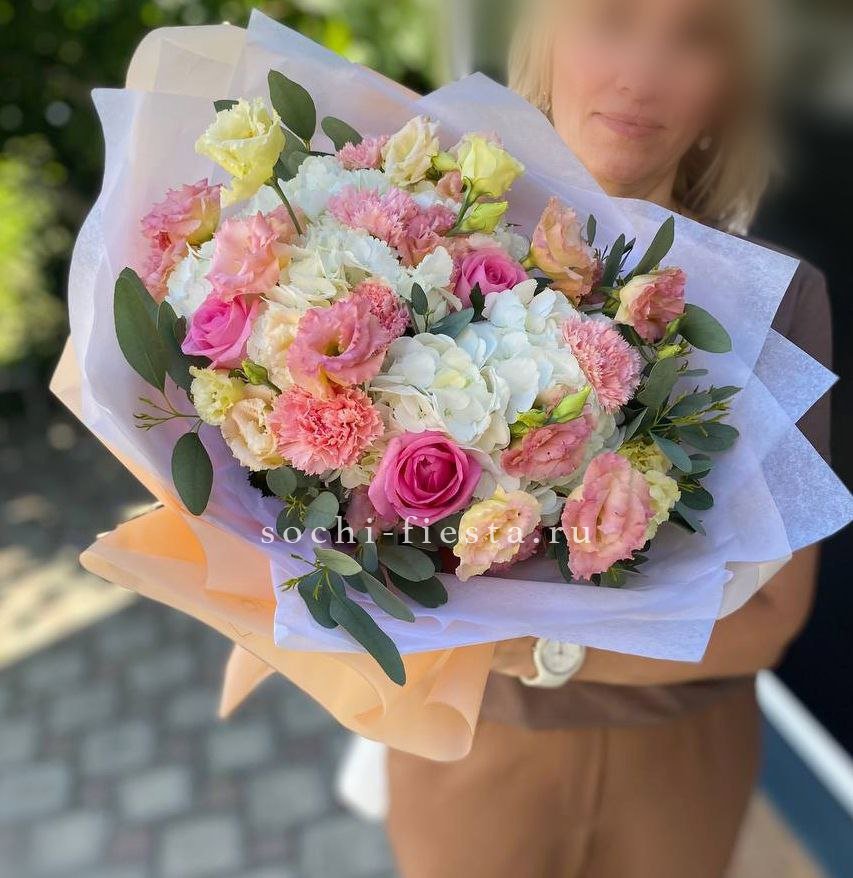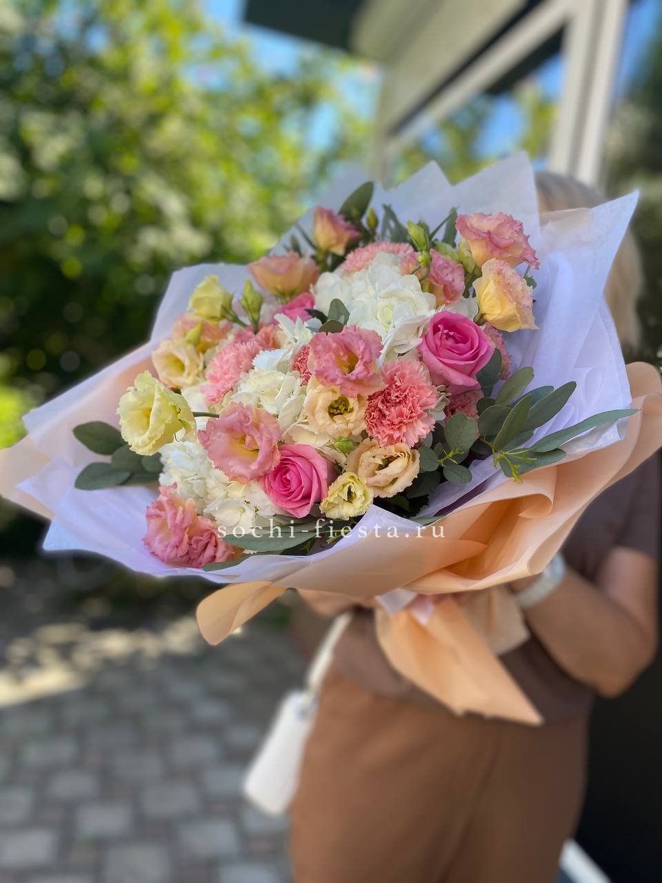 Состав: роза, эустома, эвкалипт, лента, дизайнерская упаковка
