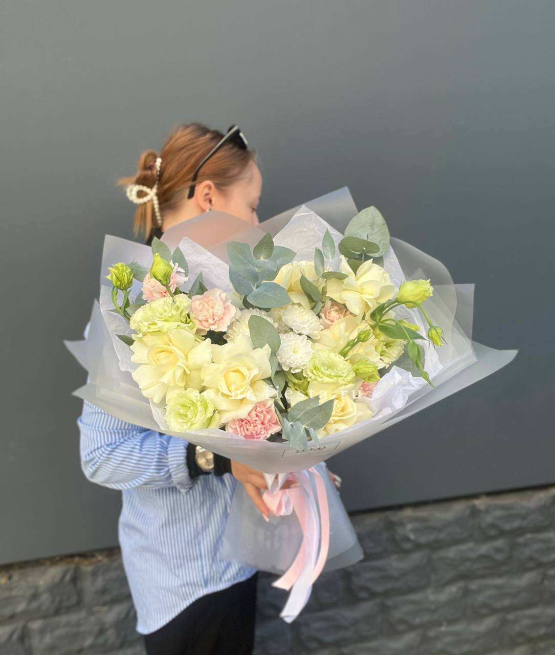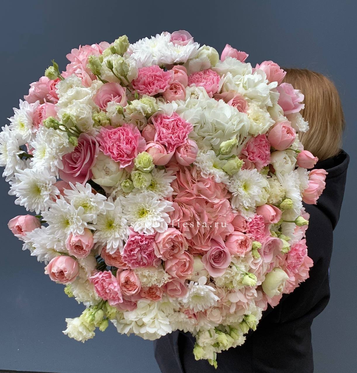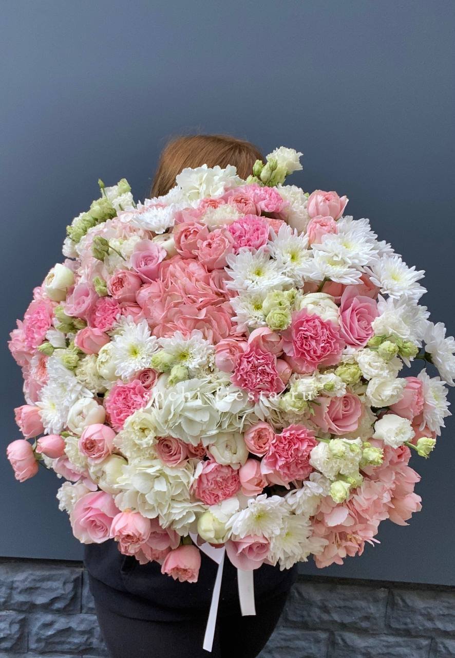 Этот пышный и по-настоящему масштабный букет — идеальный пример авторской флористики, где объем сочетается с невероятной нежностью.