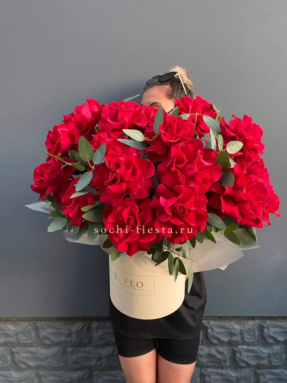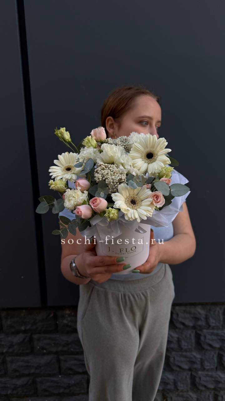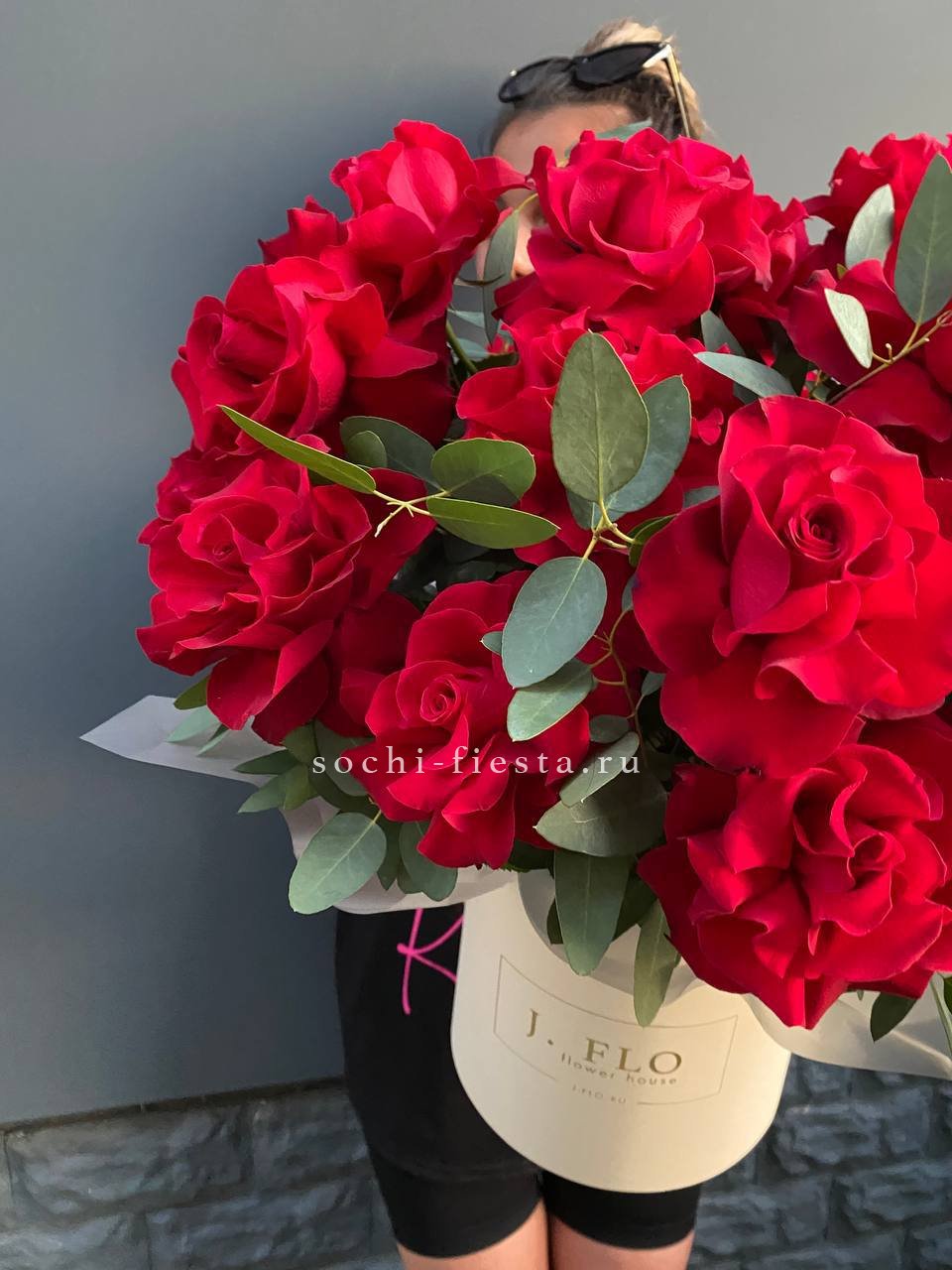 бокс 20D, белая французская роза, эустома, эвкалипт.