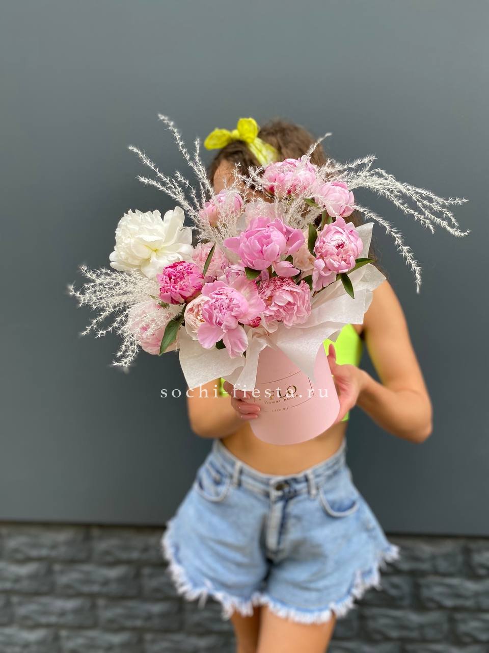 Состав: 15 пионов, пампасная трава, цилиндр D13