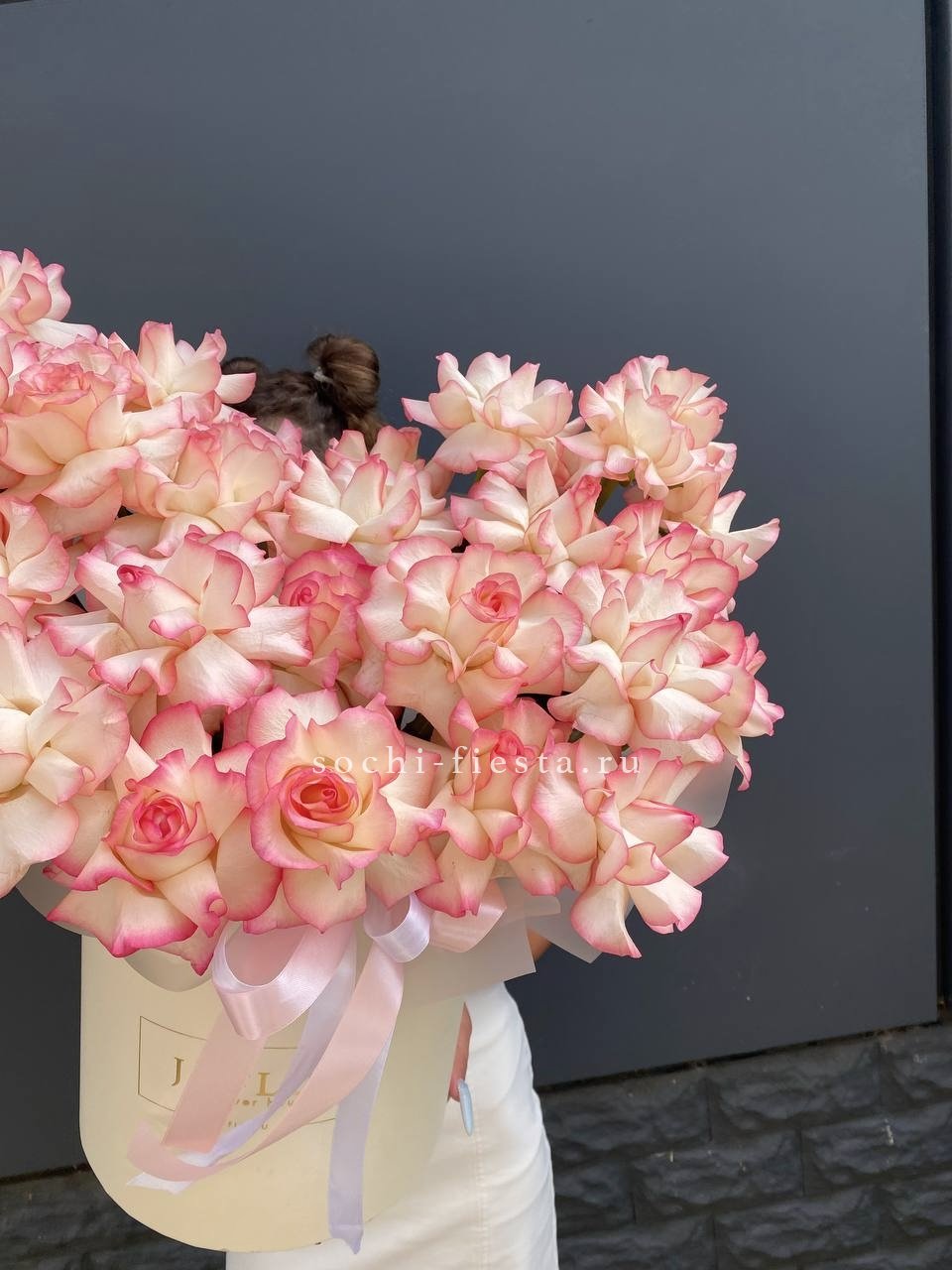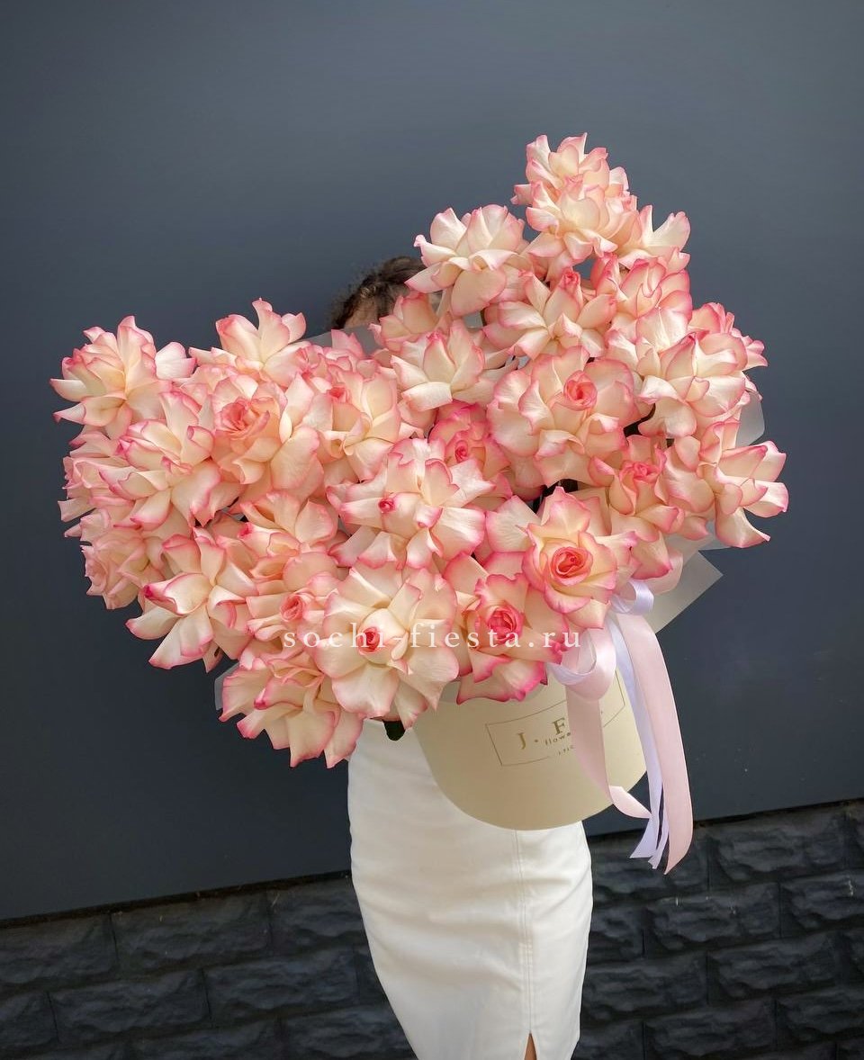 Для заказа товара "31 французская роза Джумилия в боксе" с доставкой в Сириусе нажмите в корзину