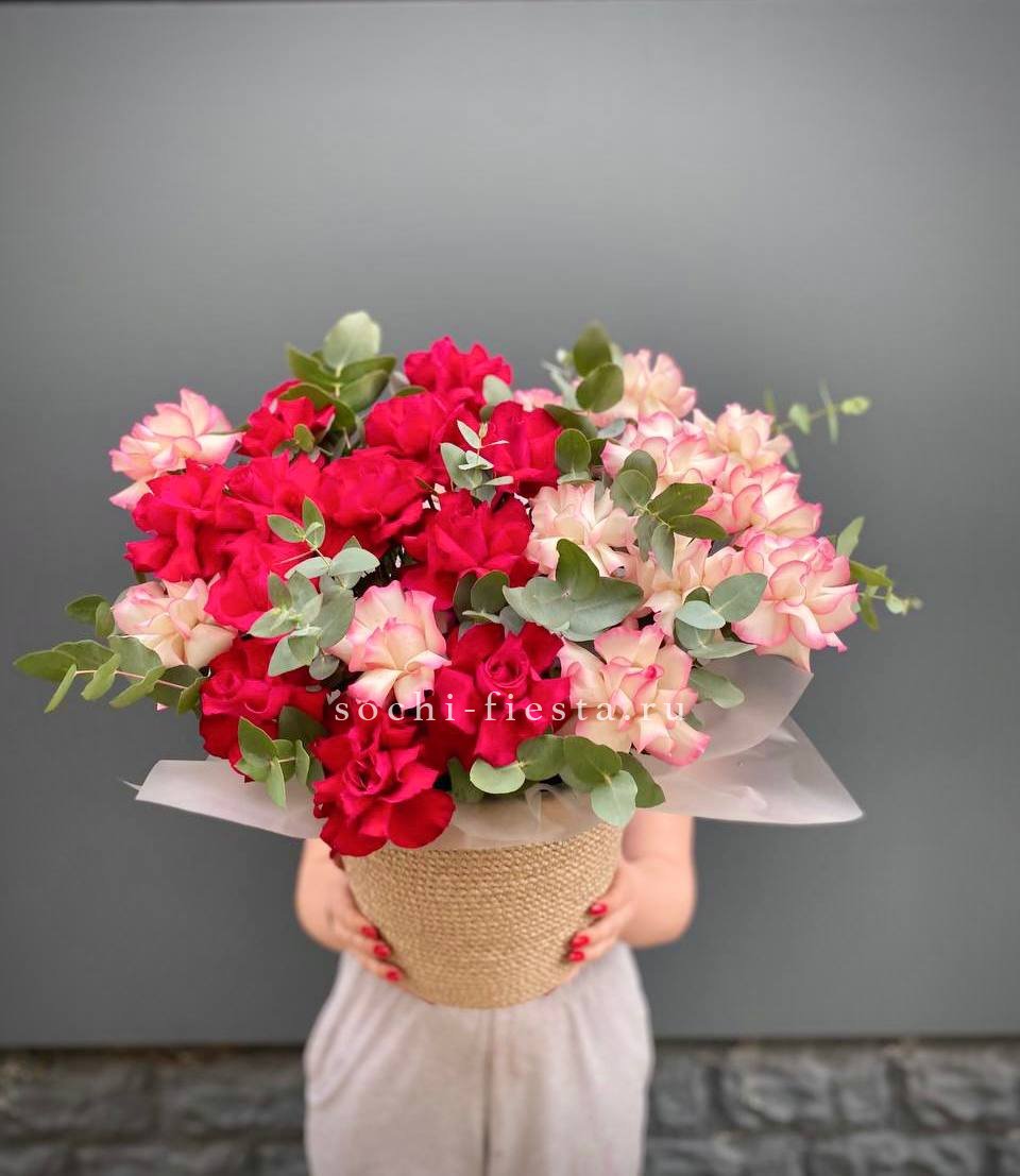 Для заказа товара "25 Французских роз в джутовом кашпо " с доставкой в Сириусе нажмите в корзину