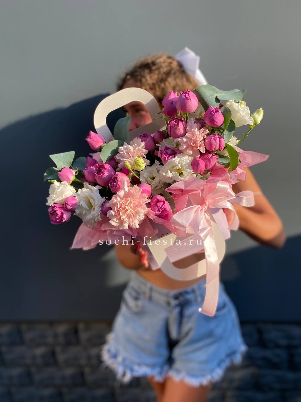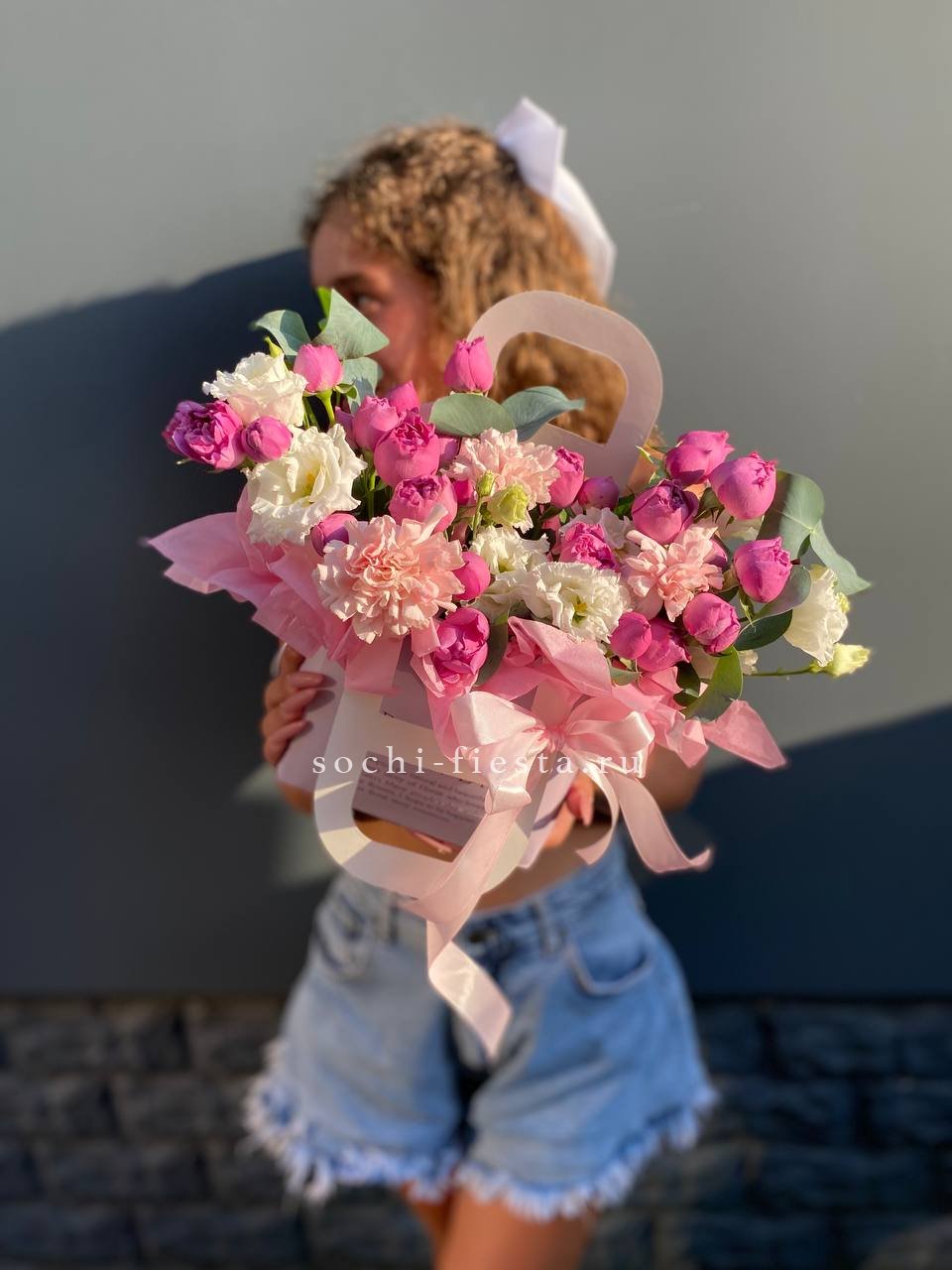 Для заказа товара "Сумочка с кустовой розой и диантусами" с доставкой в Сириусе нажмите в корзину