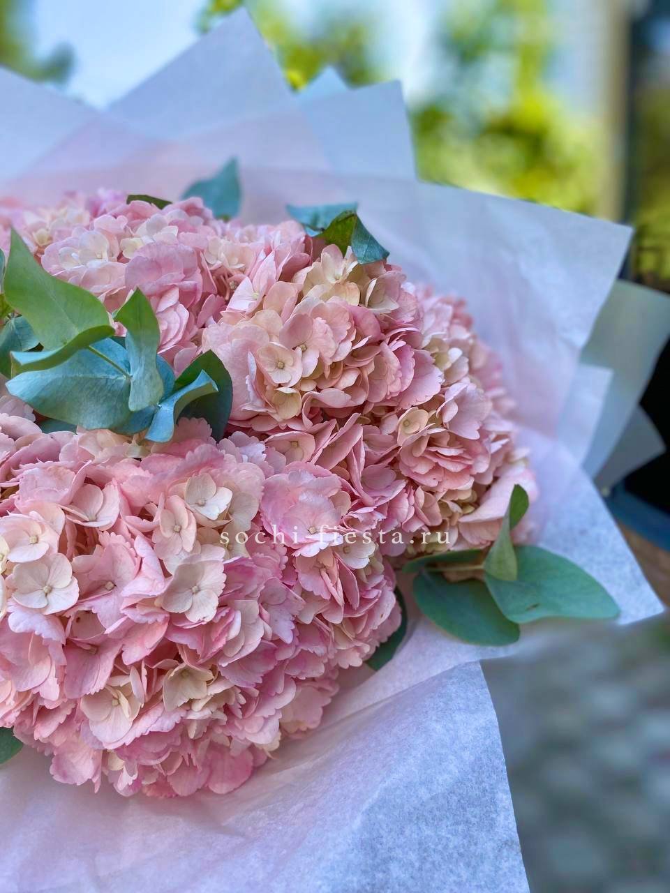 Для заказа товара "5 розовых гортензий " с доставкой в Сириусе нажмите в корзину