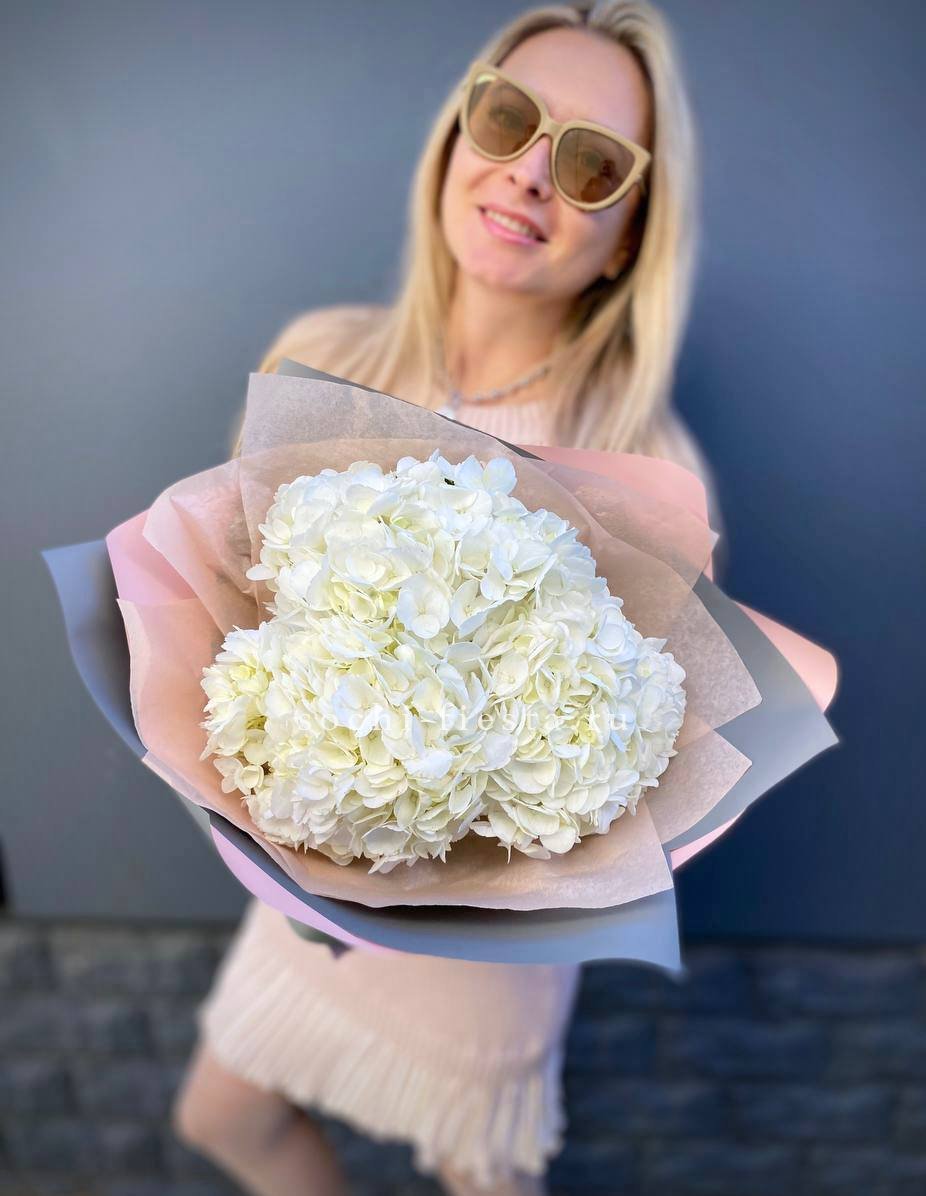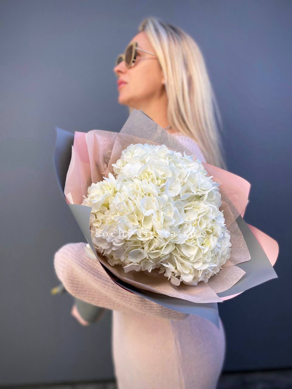Для заказа товара "Букет из трёх белых гортензий" с доставкой в Сириусе нажмите в корзину
