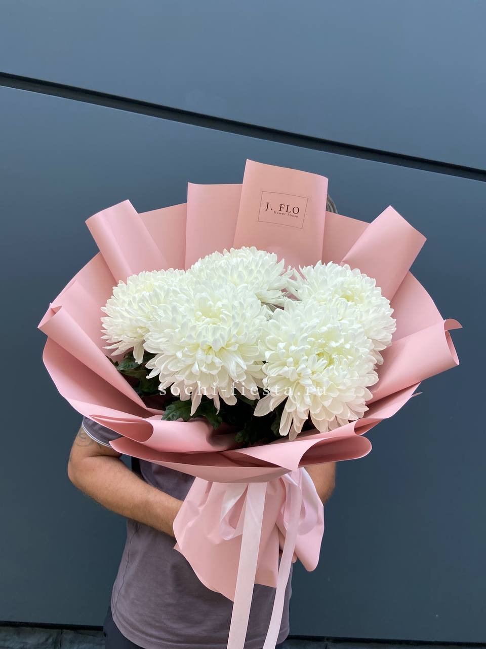 Состав: 5 одноголовых хризантем, лента, упаковка