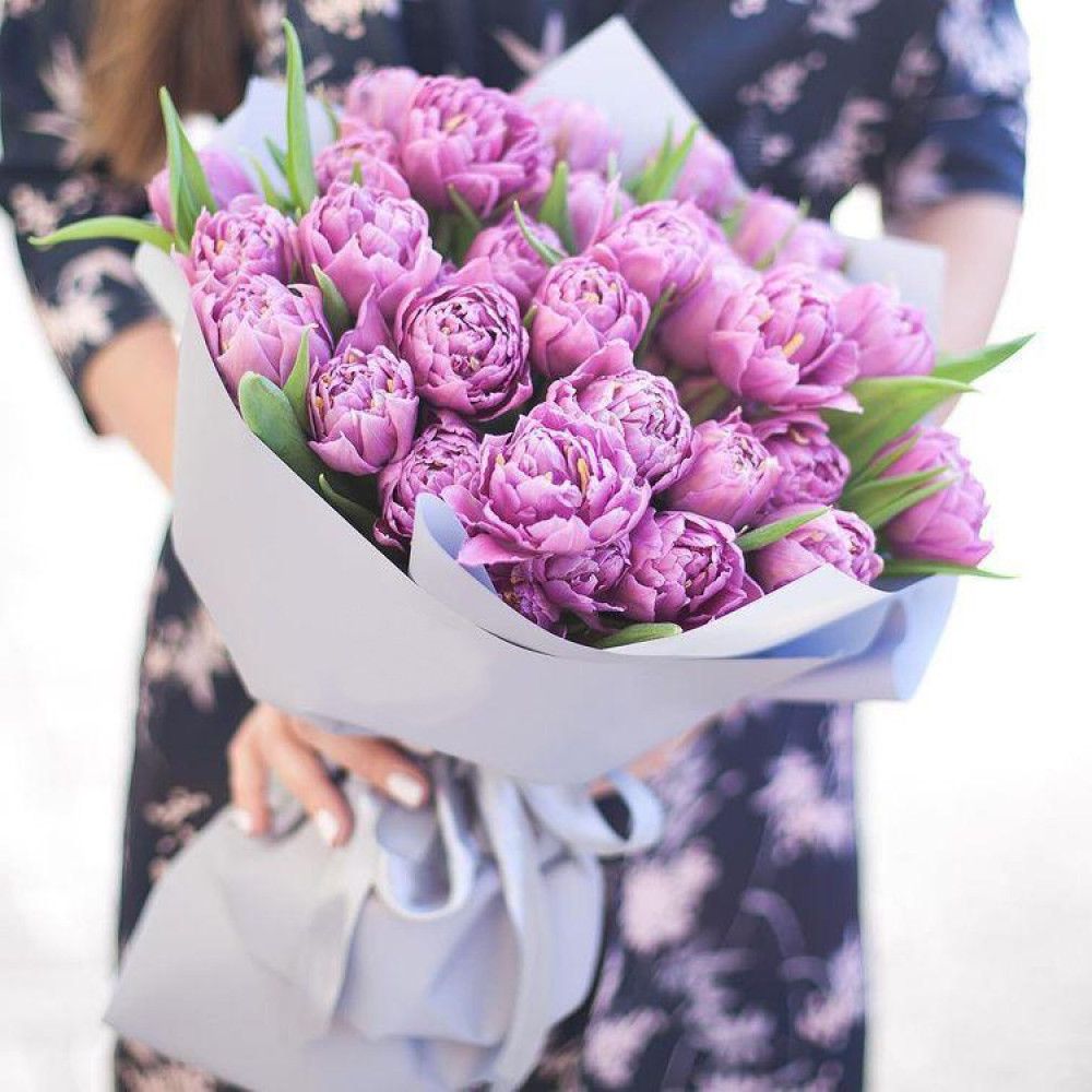 Состав: Пионовидные тюльпаны 35шт., лента, дизайнерская бумага