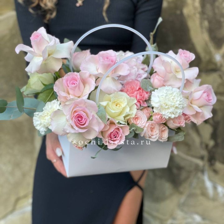 Цветочная корзина из пионов и пионовидных роз "Перфекте"