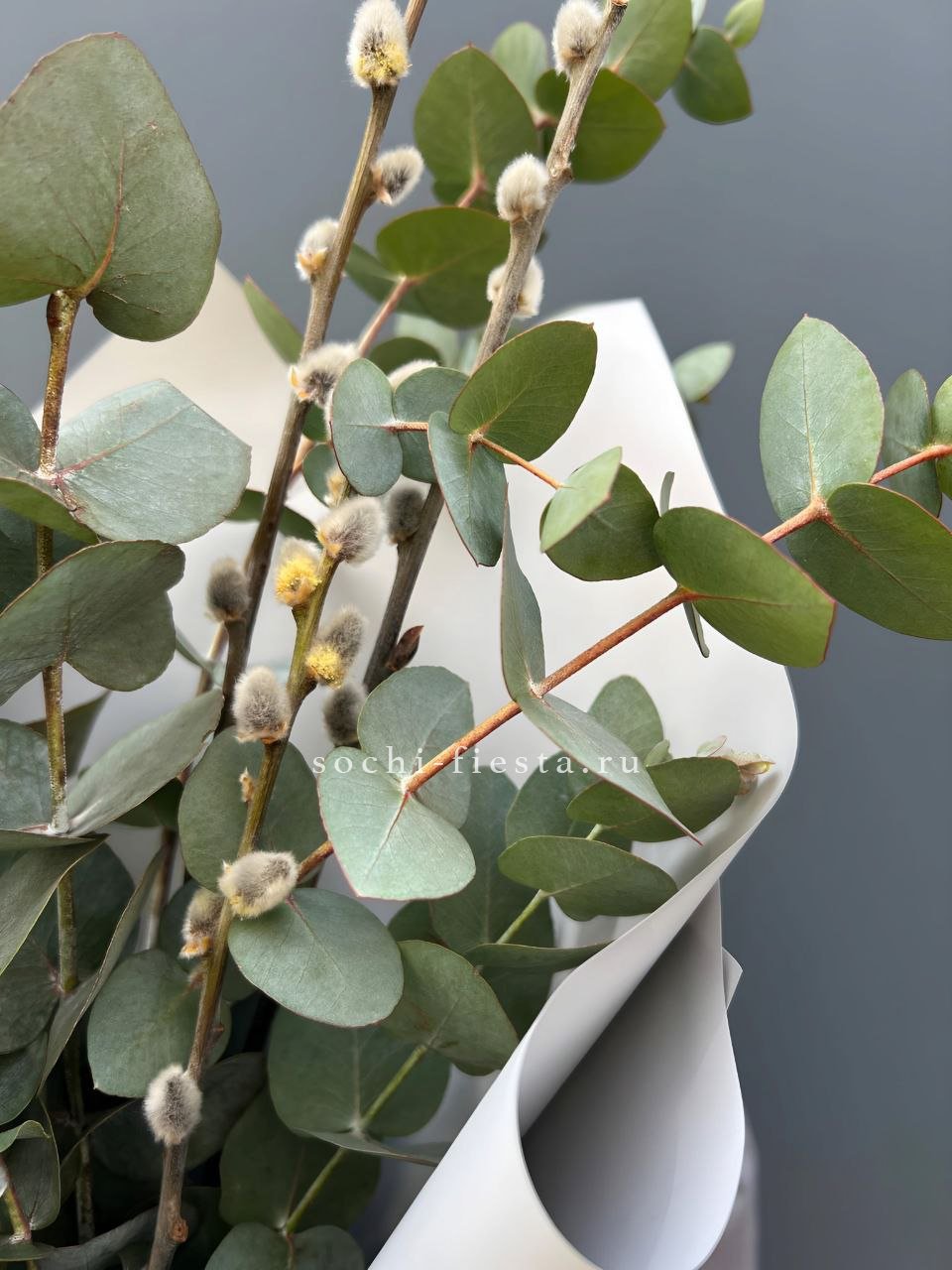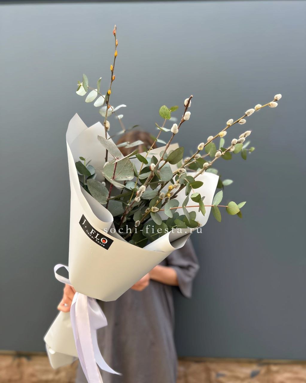 цветочная композиция идеальна для Православных Праздников! Состав выполнен из белых роз, вербы, сирени, диантусов
