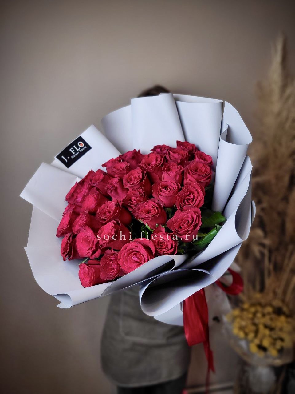 Для заказа товара "Красные розы 33 шт" с доставкой в Сириусе нажмите в корзину
