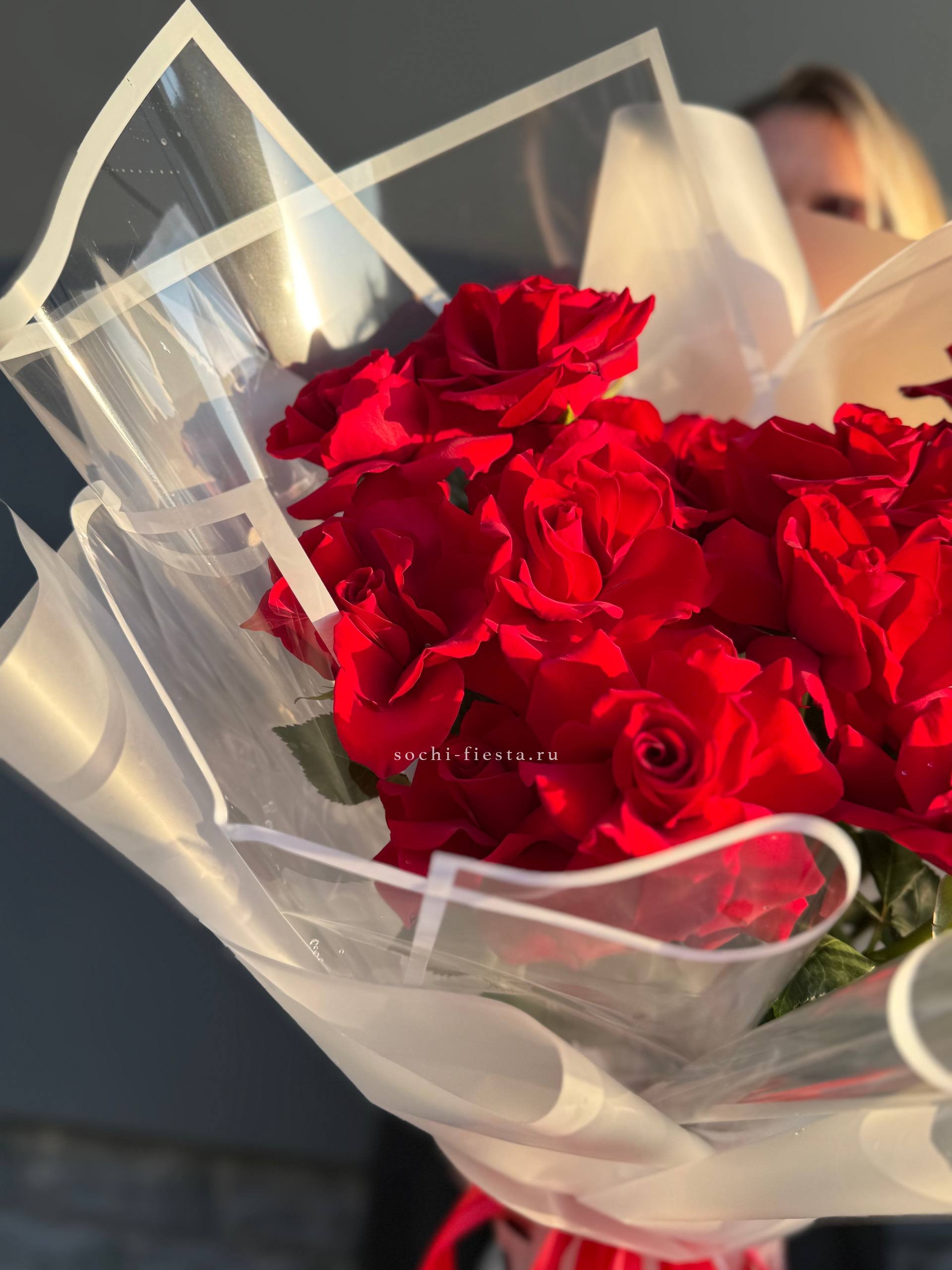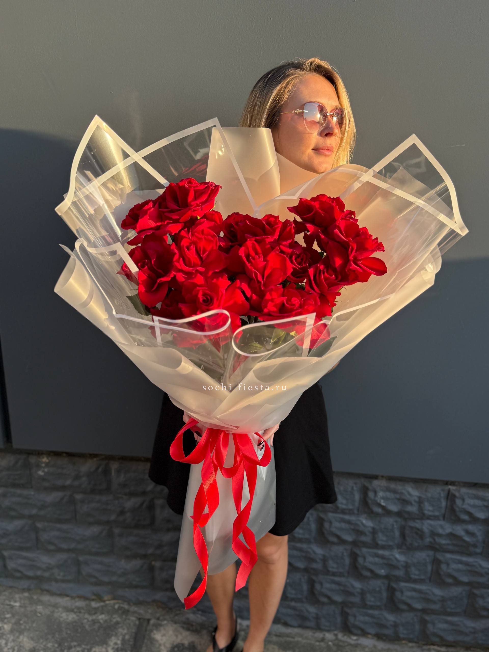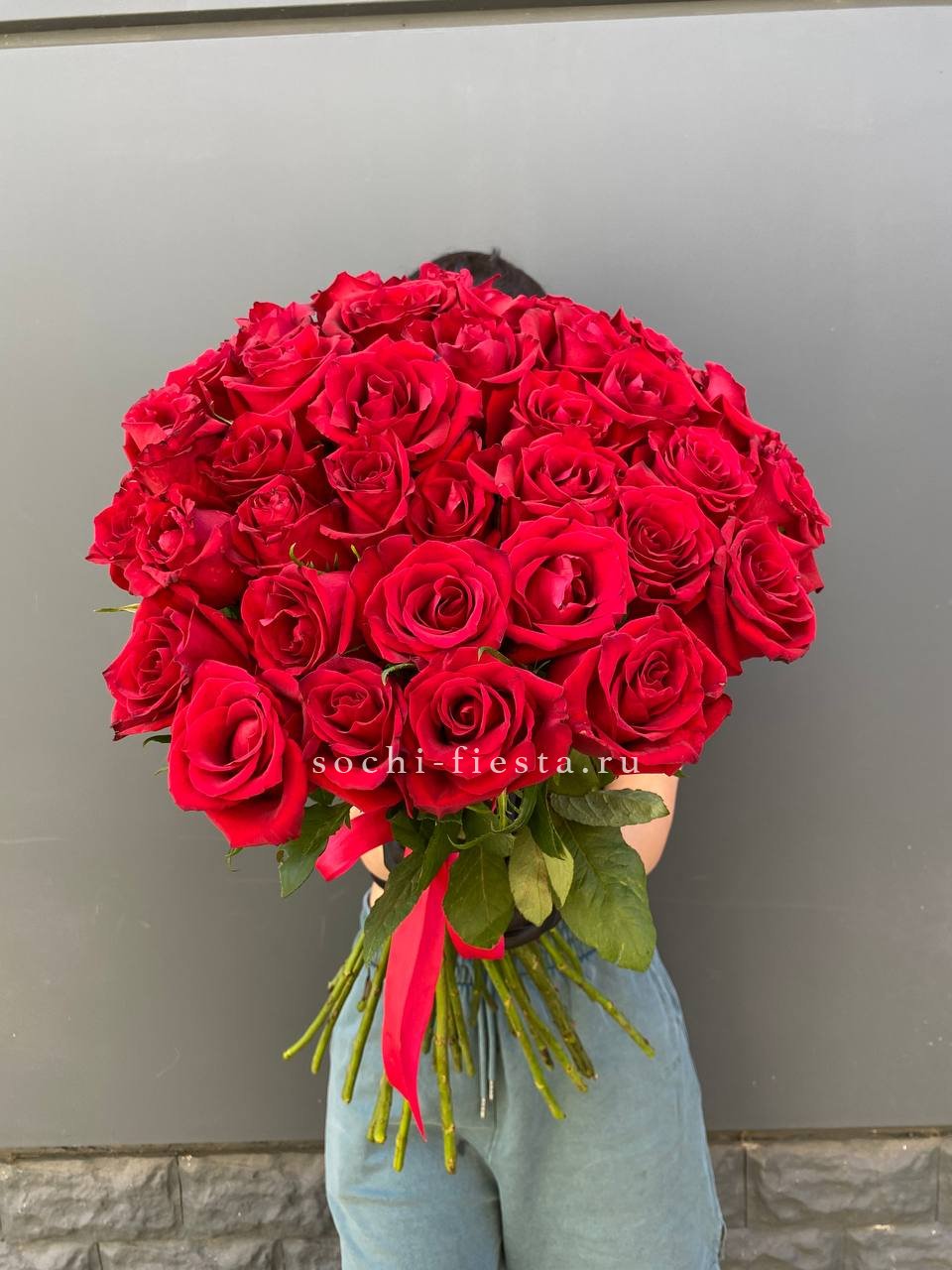 Для заказа товара "35 красных роз под ленту" с доставкой в Сириусе нажмите в корзину