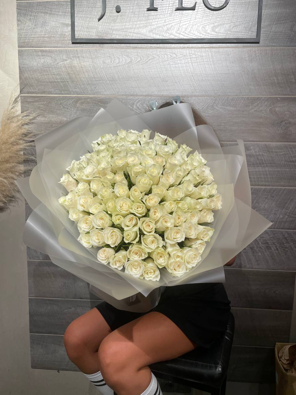 Сто одна белоснежная роза из Кении собрана в монохромную композицию с безупречной геометрией. Каждый бутон держит форму и создаёт плотное облако света. Для момента когда слова не нужны.