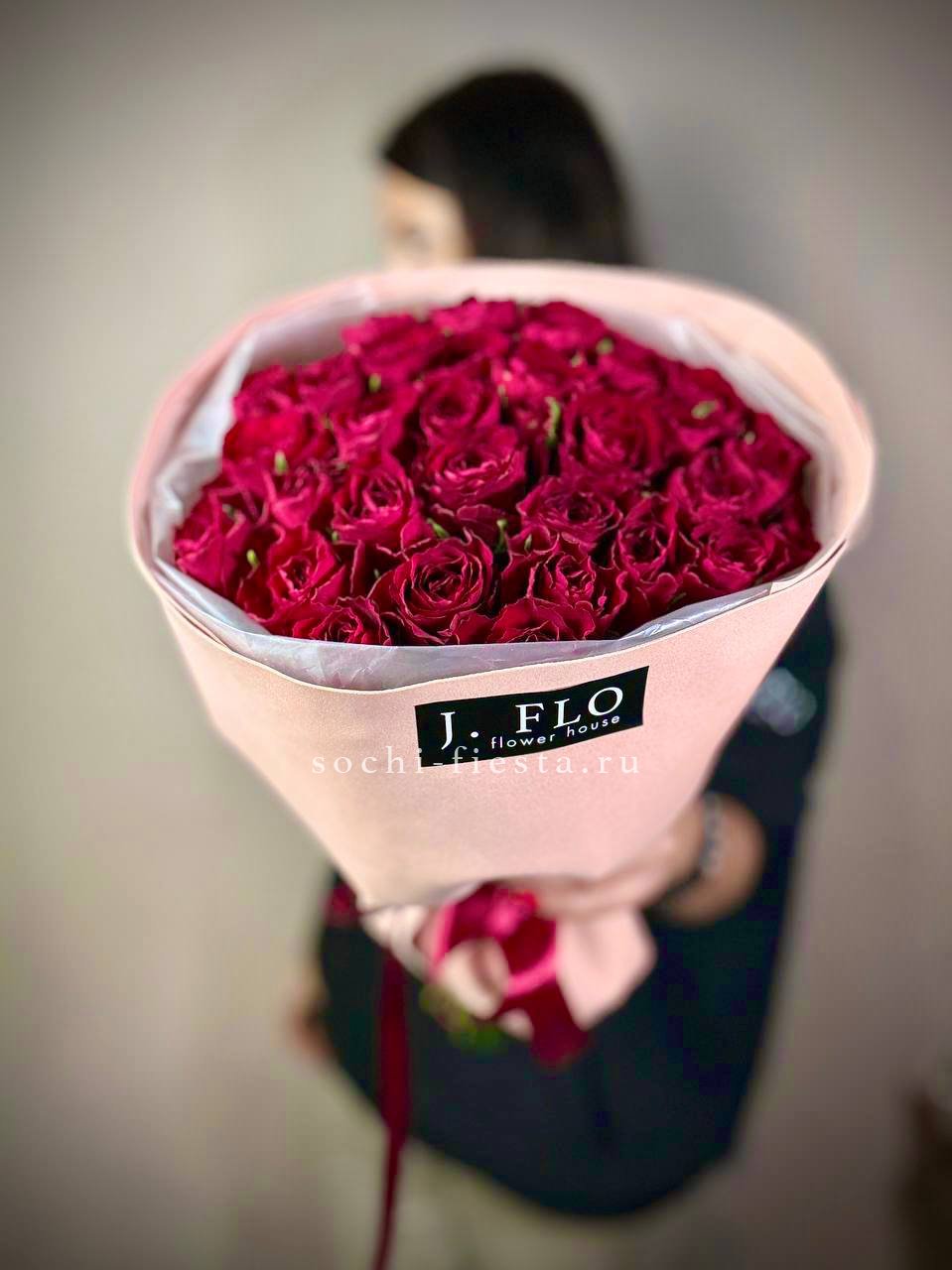 Состав букета на фотографии: 35 кенийских роз (35-40 см), лента, упаковка