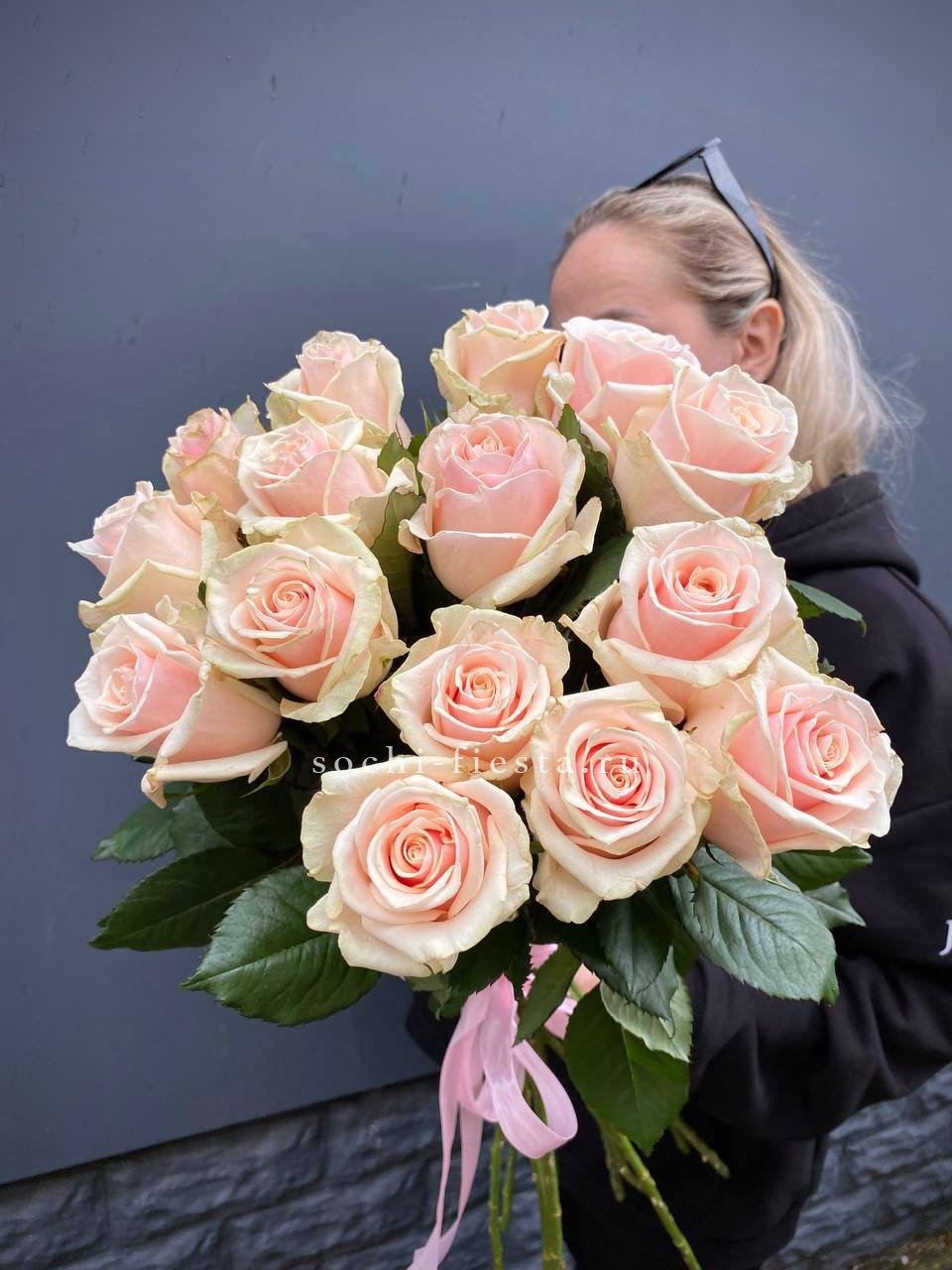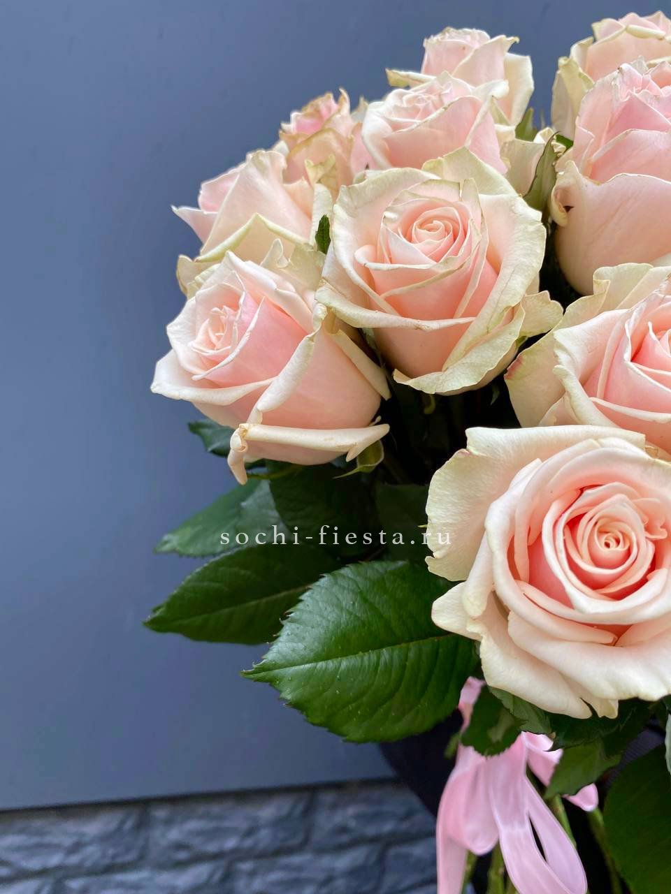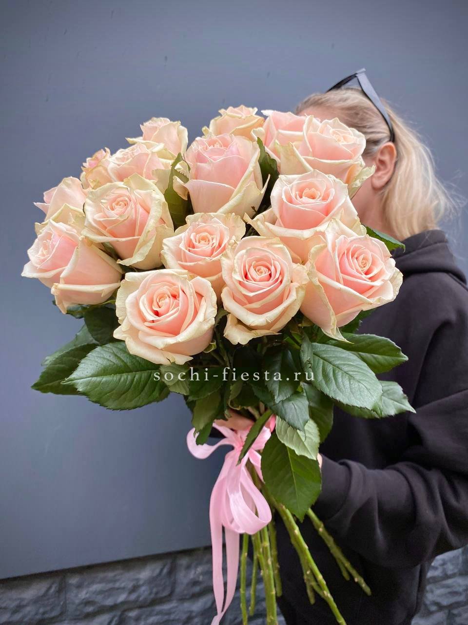 Состав: 15 высоких кремовых роз, лента, упаковка на выбор.