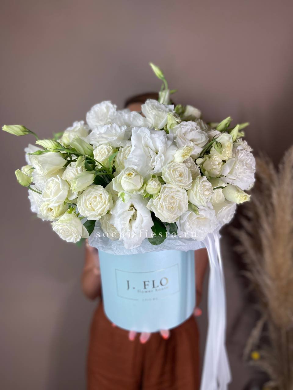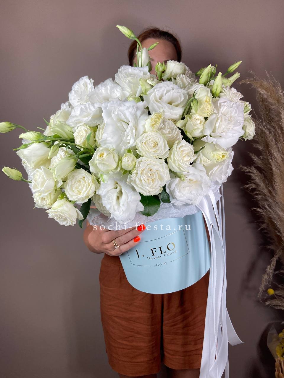 Состав: 55 роз сорта Misty bubbles и bombastic, лента, дизайнерская упаковка