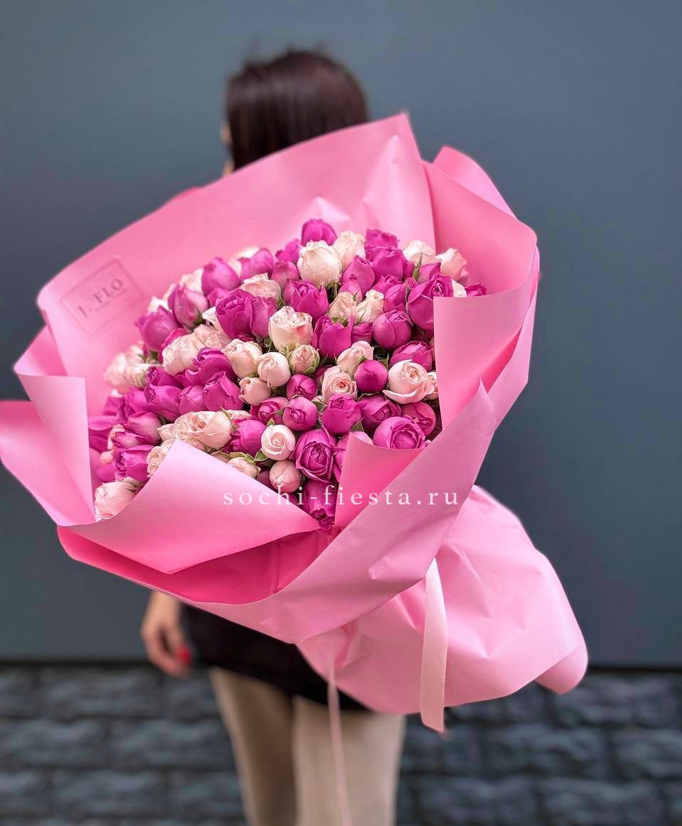 Состав: 51 пионовидная кустовых роза Мисти Баблс и бомбастик