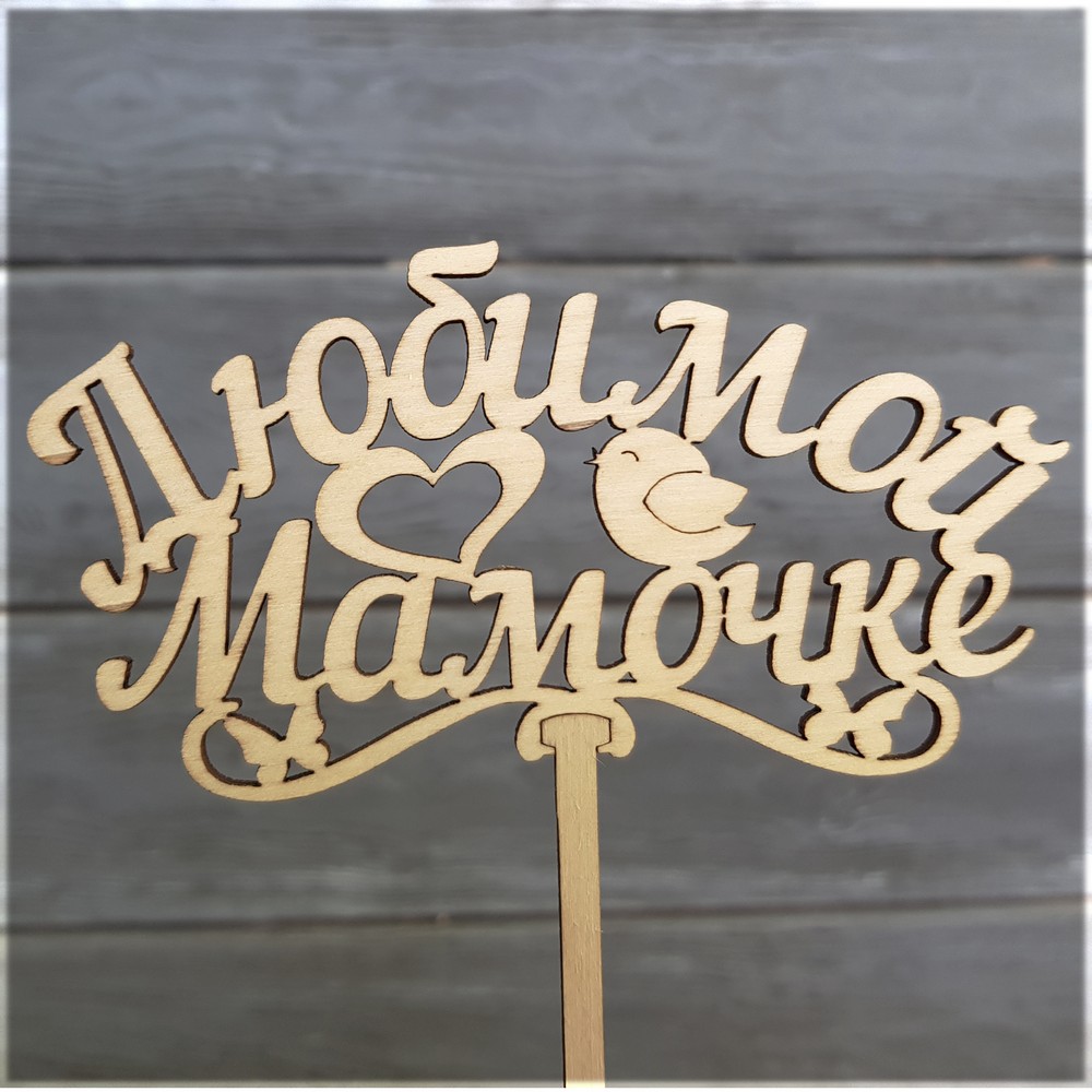 Деревянный топпер "Любимой мамочке" Может быть установлен в букет или композицию. Фактический внешний вид топпера может иметь незначительные отличия Может быть заказан только совместно с букетом или цветочной композицией
